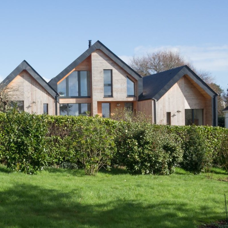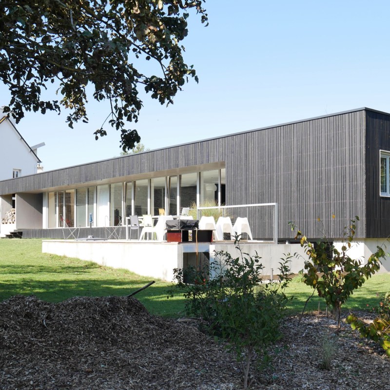 Maison en structure bois, et bardage bois, triple vitrage, ventilation double flux