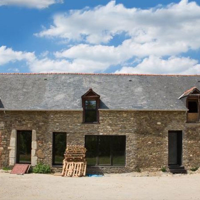 Cette petite ruine sur la cote Sud Bretagne a été totalement métamorphosée par une structure bois.