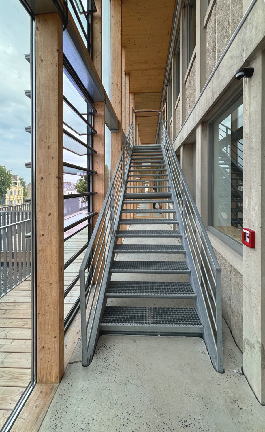 Isolation thermique et structures coursives bois ajoutées autour de l’enveloppe existante.